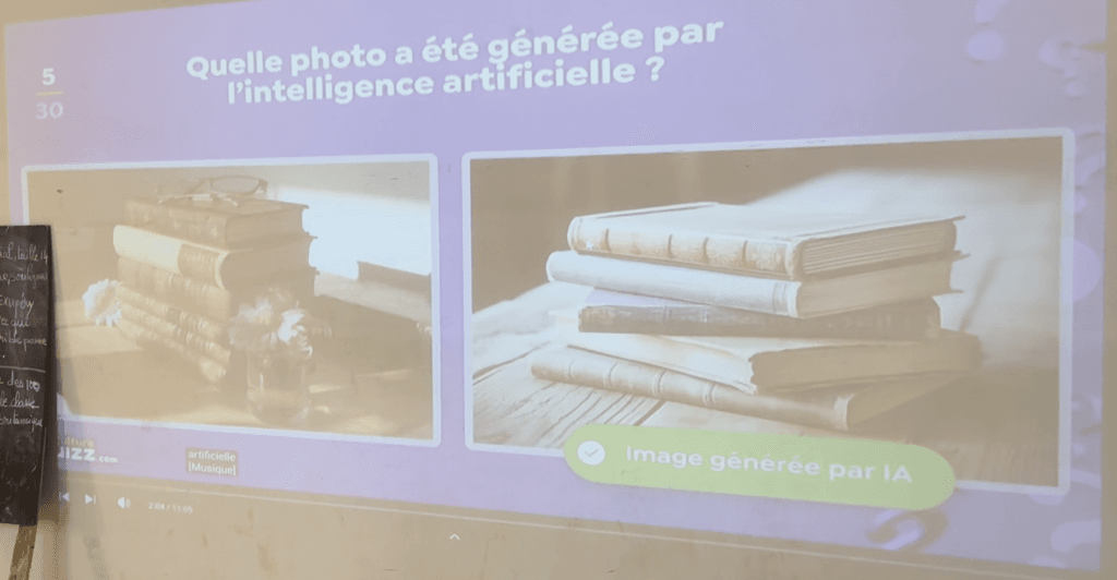 Pour rendre la séance plus ludique, des jeux interactifs ont été organisés. Les élèves ont dû distinguer des images et des vidéos réelles de celles générées par des intelligences artificielles. Ces activités ont suscité beaucoup d’intérêt et ont permis de mieux comprendre à quel point les technologies actuelles peuvent être impressionnantes… mais aussi trompeuses.